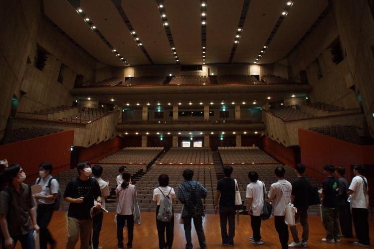 劇場職員方々からは、建築の設計やデザインコンセプトだけでなく舞台装置やバックヤードなど、普段は目にすることができない裏側の空間まで丁寧にご案内いただきました。