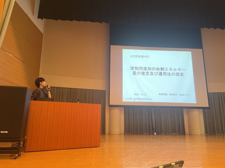2025年10月12日(日)~13日(月)、4大学(九州大学・北九州市立大学・香川大学・崇城大学)による合同ゼミが開催され、工学部建築学科・呉研究室の4年生2名が参加しました。