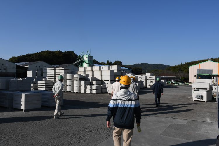 武田研究室の学生たちは、多種多様なコンクリート製品の製造の様子を間近で観察し、工場のスタッフの方の詳しい説明に熱心に耳を傾け、専門のコンクリート工学について有用な知見を得ることができました。