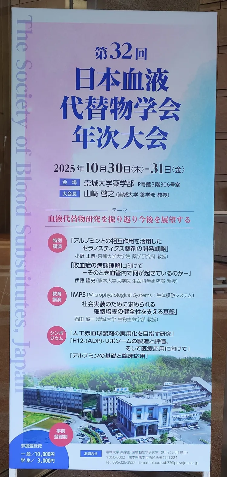 2025年10月30日(木)・31日(金)、本学薬学部にて「第32回血液代替物学会年次大会」が開催されました 。