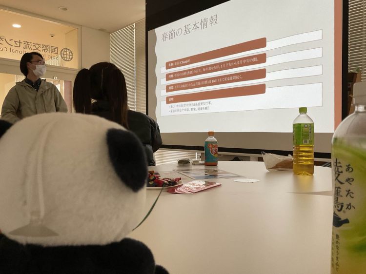 発表者:ヒョウさん(工学部宇宙航空システム工学科宇宙航空システム専攻2年・雲南省出身)、ジャオさん(生物生命学部4年・吉林省長春市出身)