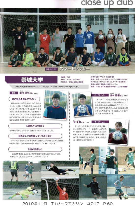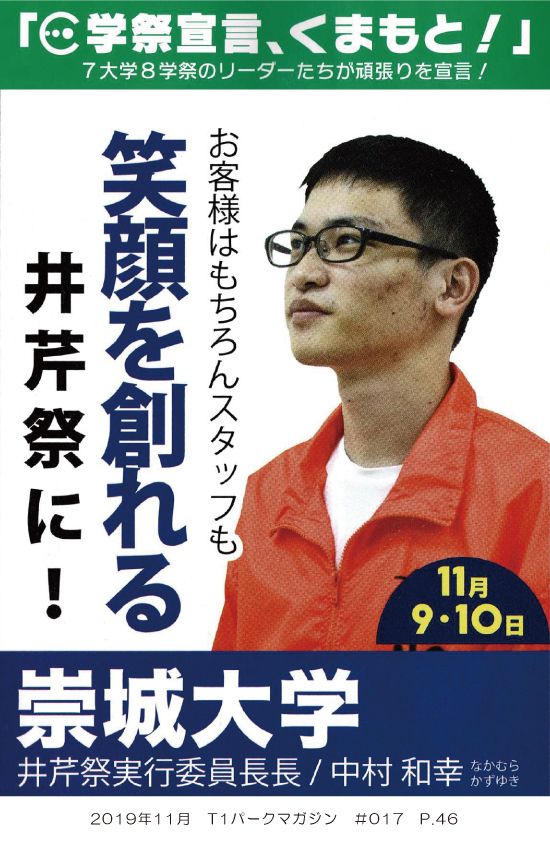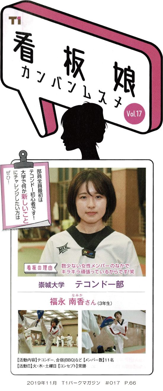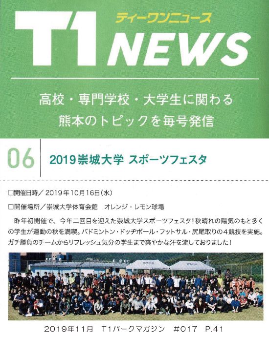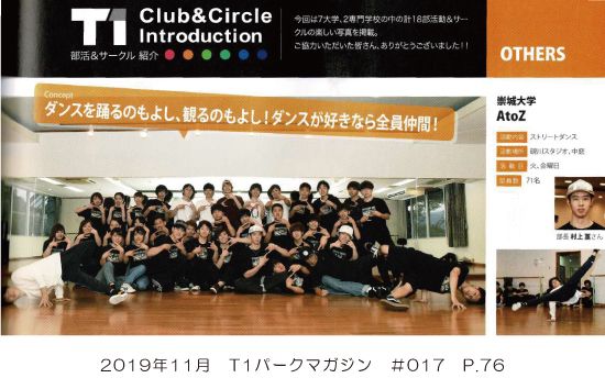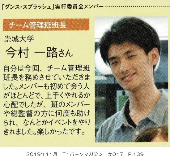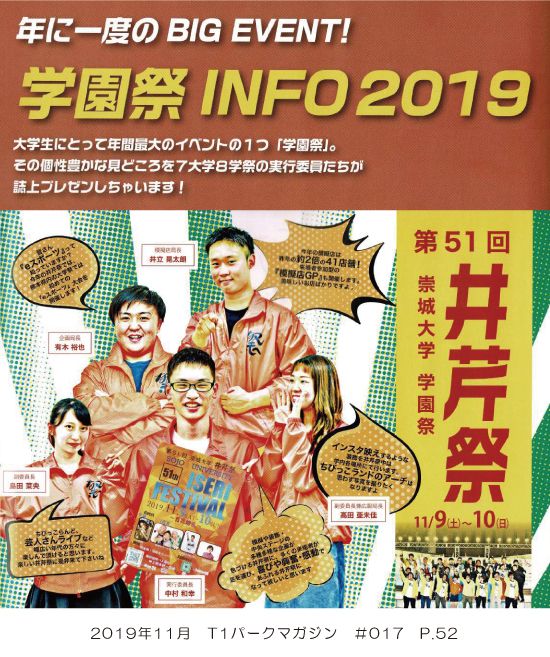 「T1パークマガジン #017」(2019年11月発行)に、本学学生の活躍する姿が多数掲載されました。