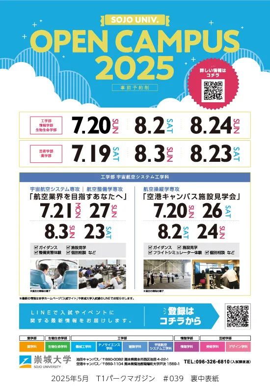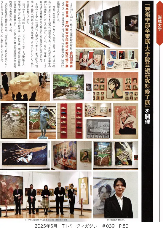「T1パークマガジン #039」(2025年4月発行)に、2025年2月18日(火)~24日(月)に開催された第22回芸術学部卒業展・第20回大学院芸術研究科修了展「SOJO UNIVERSITY STUDENT EXHIBITION 2025」や、大学入学特集として学長の式辞などが多数掲載されました。