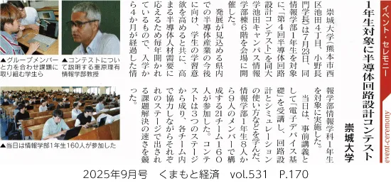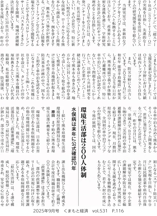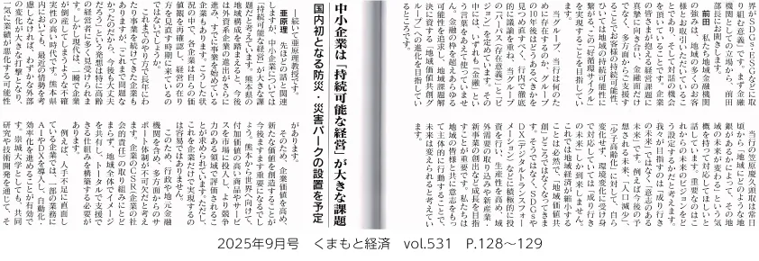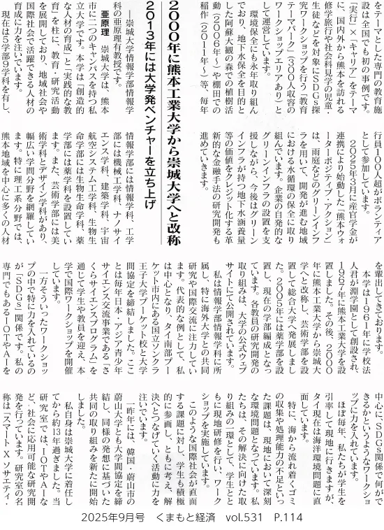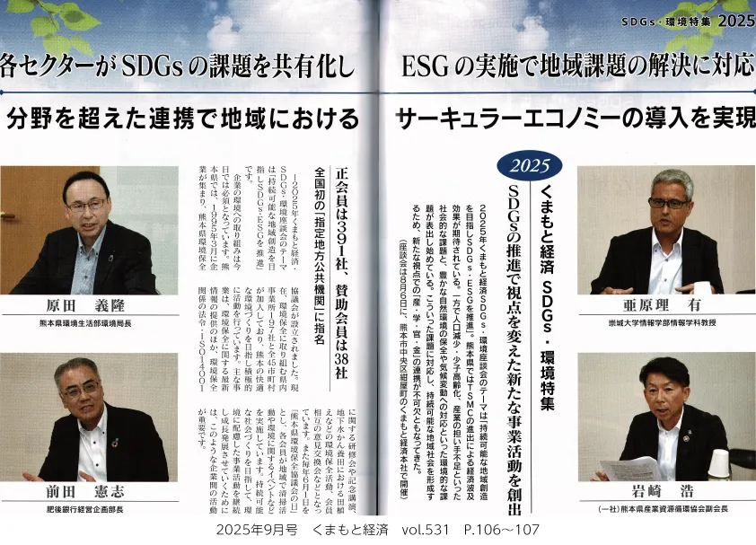 本学 亜原理有教授(情報学部情報学科)がくまもと経済の座談会「2025くまもと経済 SDGs・環境特集 SDGsの推進で視点を変えた新たな事業活動を創出」に参加しくまもと経済9月号に掲載されました。